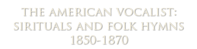 Two rare sources were of prime importance for this recorded program: The American Vocalist, an oblong hymn book in four-part harmony, compiled by the Rev. D.H. Mansfield, published in Boston in 1849 (and purchased by this writer 1986 at a secondhand bookstore in Portsmouth, New Hampshire); and The Revivalist, a book of mostly single-line spirituals, published at Troy, New York in 1868.