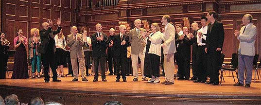 JulyThe cast of the December, 2004 “A Mediterranean Christmas” comes together in 90 degree heat to record that program for Warner Classics at Boston’s Church of the Covenant (see photo below).