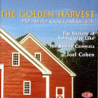 The most recent fruits of our work with the Shaker family of Sabbathday Lake, Maine, are now available on a new CD, The Golden Harvest, on the Glissando label. We hope you'll run out to buy the album, which contains magnificent music -- you can even obtain it directly from us by sending a query to bcamerata@aol.com.