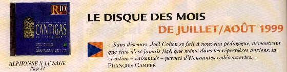Thanks to Répertoire magazine of Paris for this honor. This new recording of King Alfonso el Sabio's wonderful Cantigas features the Camerata Mediterranea, directed by Joel Cohen, and the Andalusian Orchestra of Fez. Morocco, directed by Mohammed Briouel. We have been posting news of this project since Joel's first trips to Fez in January of last year, and we are delighted that the recording is getting such a warm welcome (it also garnered five stars from another Paris review, Diapason.)