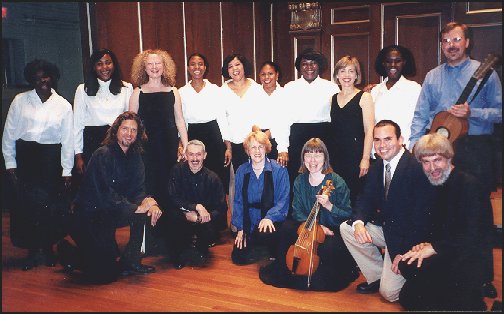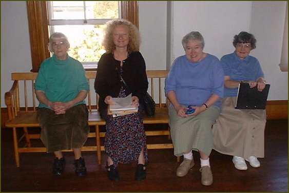 The photo, above right, was taken at the Shaker's village in Maine at a rehearsal for the fall concerts. From left to right, Anne Azéma, Brother Doug, Sister Frances (holding a bag of apples), Brother Wayne, and Joel Cohen.